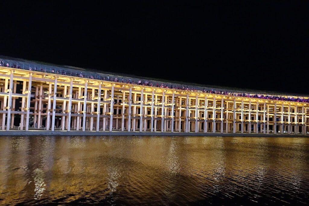 Деревянное кольцо вокруг выставки. Сверху открываются панорамные виды на территорию ЭКСПО, особенно впечатляющие на закате