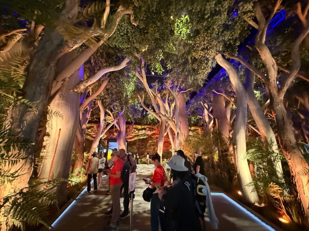 Павильон Австралии. Здесь внутри воплощена одна из самых оригинальных идей — встроенные в стволы деревьев экраны-дупла. На них показывается повседневная жизнь местных животных.