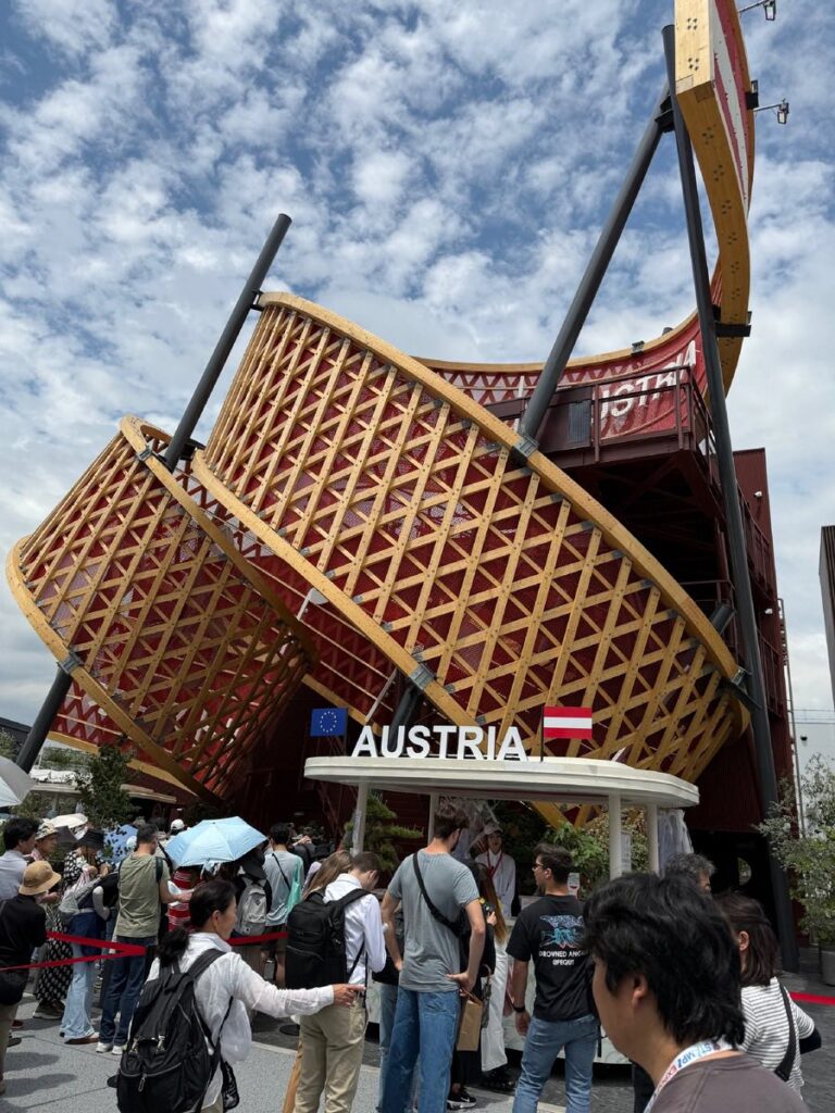 Павильон Австрии: очень длинная очередь. Но даже без посещения внутри производит эстетическое удовольствие.