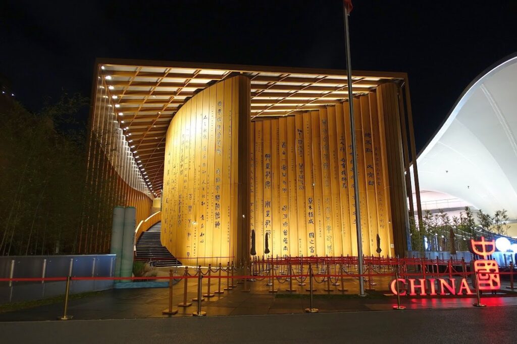 Павильон Китая. Экстерьер производит сильное впечатление: фасад отделан деревом, украшенным изящной росписью в виде иероглифов. Внутри тоже интересная экспозиция, хвалят.