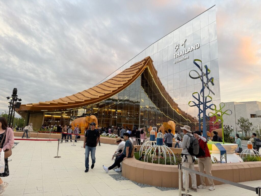 У павильона Таиланда тоже очень интересный дизайн: слева — историческая часть здания, справа — современный стеклянный фасад.